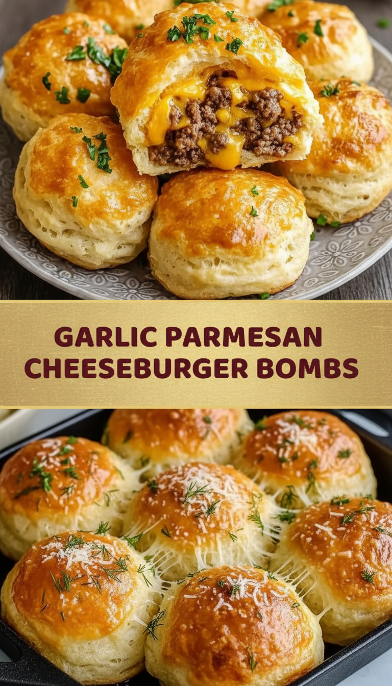 These Irresistible Garlic Parmesan Cheeseburger Bombs are not just a meal; they’re an experience wrapped in biscuit goodness. With every bite, you’ll be treated to layers of flavor that combine comfort and joy, making it hard to stop at just one! Whether you’re sharing with family or indulging solo, these cheesy bites are guaranteed to become a favorite in your home. So roll up your sleeves and start cooking—happiness is just a bake away!